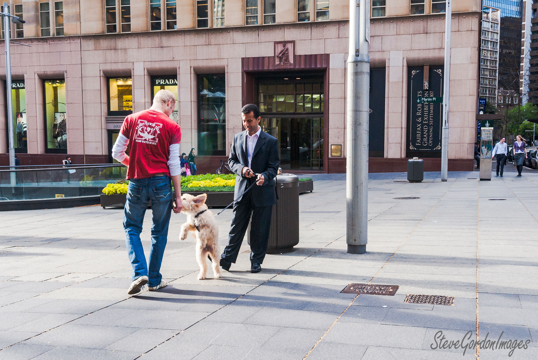 Dog Dancing On City Pavement