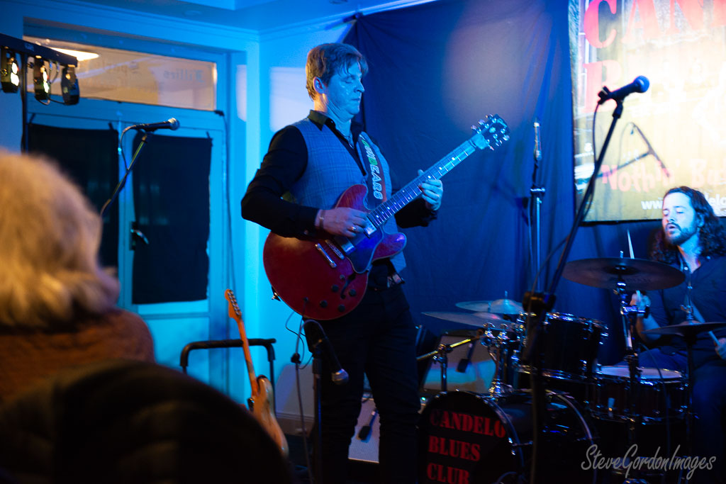 GalleriesArtsStyleColourBlueLIVE BAND,CANDELO,BLUES,CLUB,GALLERY LIVE BAND,CANDELO,BLUES,CLUB,GALLERY Guitarist plays red guitar, drummer performs. Band plays at Candle Blues Club. LIVE BAND,CANDELO,BLUES,CLUB,GALLERY
