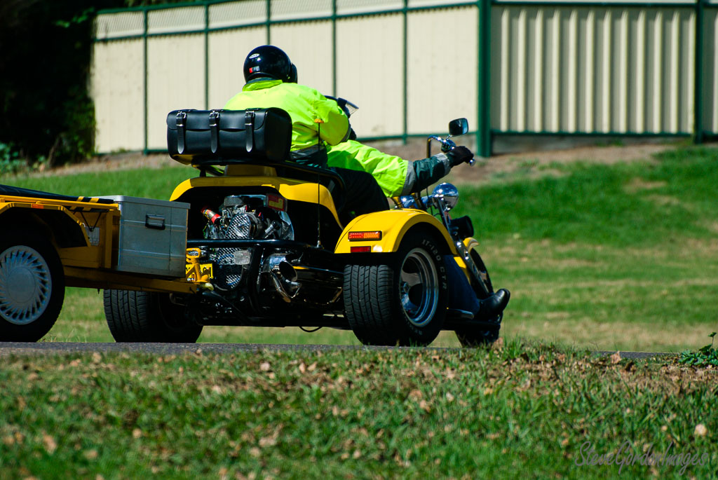 Yellow Trike Rider On Road.