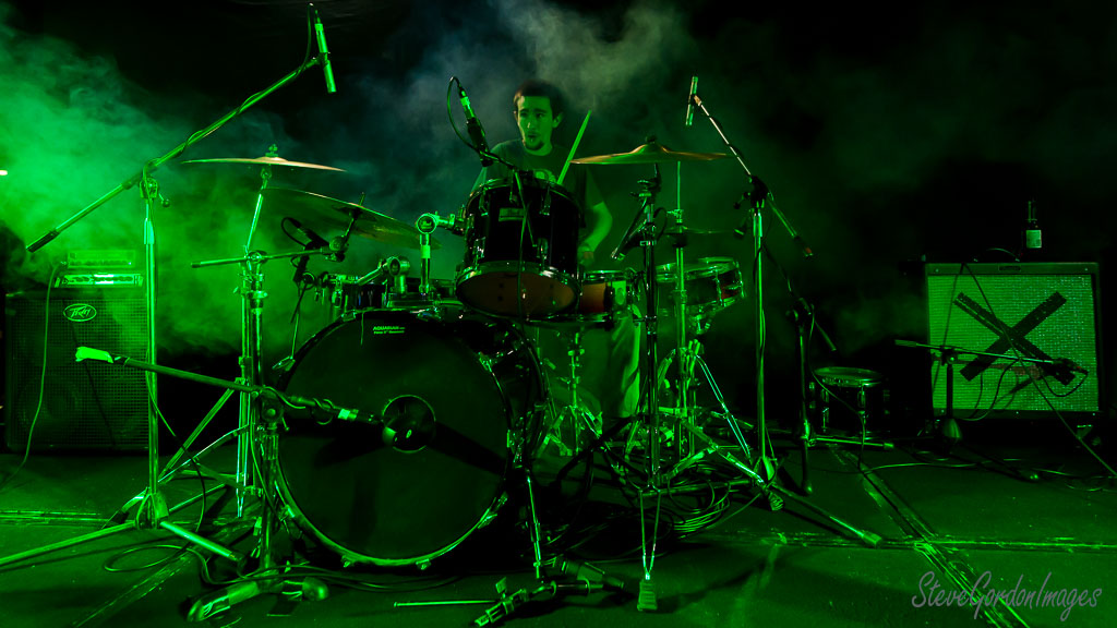 GalleriesArtsStyleColourGreenGreen Lit Drummer Stage Performance. Green Lit Drummer Stage Performance. A drummer performs on stage, illuminated by green lights and smoke, likely during a concert or live music event. Green Lit Drummer Stage Performance.
