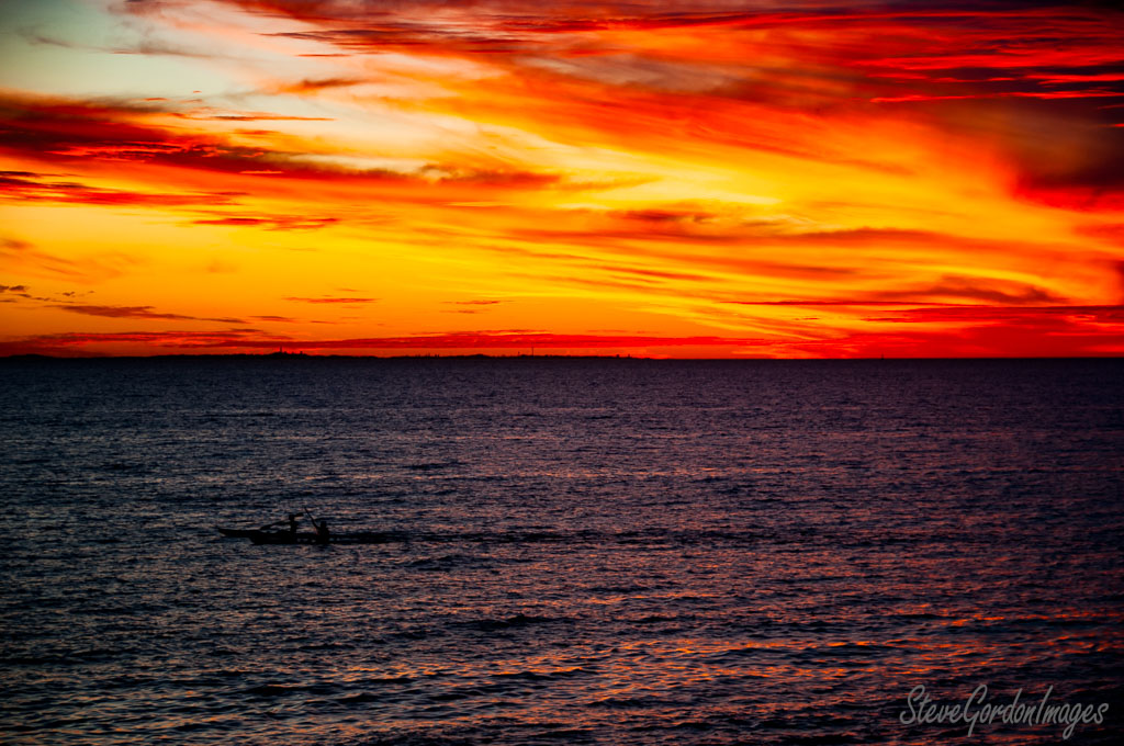 GalleriesArtsStyleColourOrangeFiery Sunset Over Calm Waters. Fiery Sunset Over Calm Waters. Two people paddle a boat across the ocean, under a vibrant, fiery sunset. Fiery Sunset Over Calm Waters.