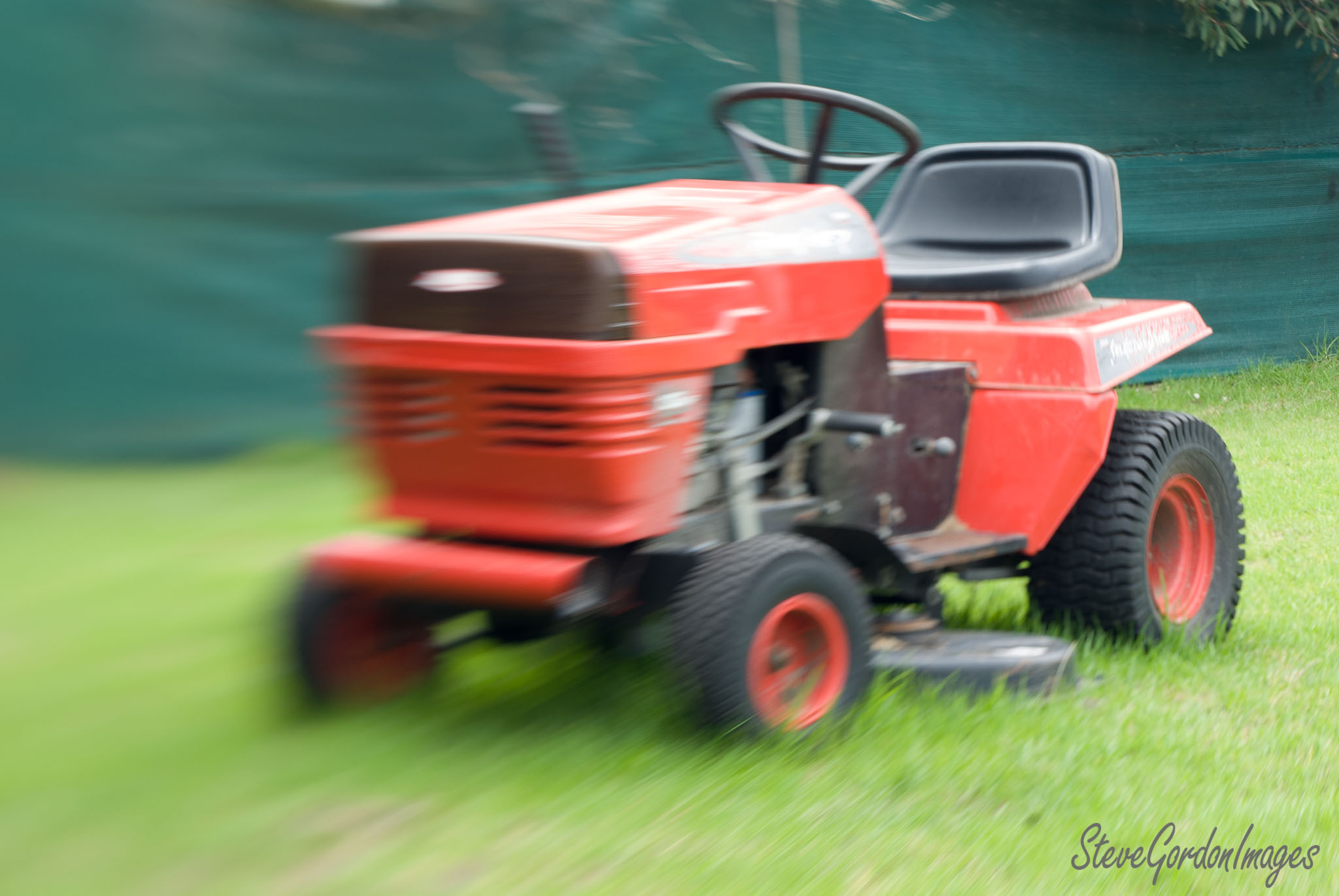GalleriesArtsStyleColourRedRed Mower Blurring Green Lawn. Red Mower Blurring Green Lawn. A riding lawnmower is mowing the grass. The blurred motion suggests it is in operation, cutting the lawn. Red Mower Blurring Green Lawn.