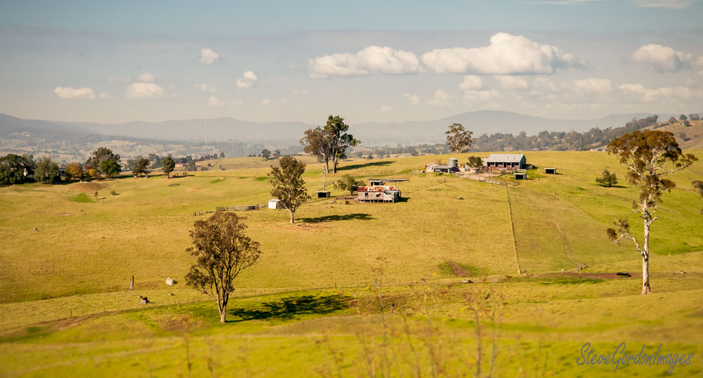 GalleriesArtsStyleColourYellowRolling Hills, Farm, Cloudy Sky. Rolling Hills, Farm, Cloudy Sky. A rural landscape shows a farm with buildings, trees, and rolling hills under a cloudy sky. Rolling Hills, Farm, Cloudy Sky.