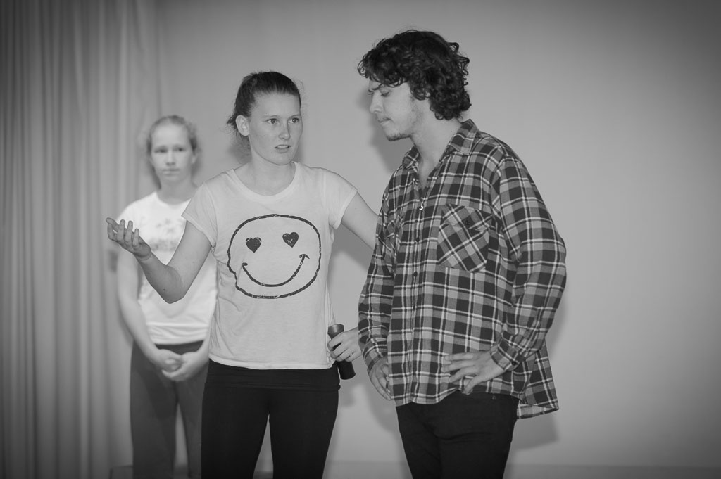 GalleriesArtsTheatre1 Pirates of Pambula BeachRehearsalsDRAMATIC, STAGE, PHOTO, STUDENTS, POSED DRAMATIC, STAGE, PHOTO, STUDENTS, POSED Two actors, one in a plaid shirt, the other in a smiley face t-shirt, engage in a scene. Possible play or school performance. DRAMATIC, STAGE, PHOTO, STUDENTS, POSED