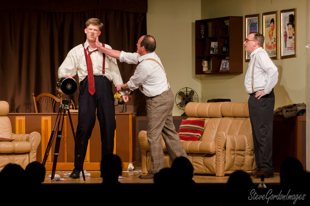 GalleriesArtsTheatre10 Moonlight and MagnoliasPerformancesStage Drama, Man Slapped, Suspendered Actors. Stage Drama, Man Slapped, Suspendered Actors. On stage, a man is slapped. Two other men watch, a camera sits nearby. The play is on. Stage Drama, Man Slapped, Suspendered Actors.