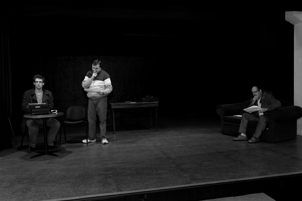 GalleriesArtsTheatre10 Moonlight and MagnoliasRehearsalsWriters, Stage, And Their Thoughts. Writers, Stage, And Their Thoughts. Three men on stage, one types, one reads, and one sits, all appear to be rehearsing. Writers, Stage, And Their Thoughts.