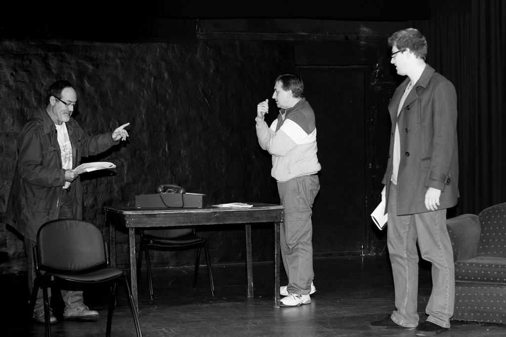 GalleriesArtsTheatre10 Moonlight and MagnoliasRehearsalsActors Rehearsing On A Stage. Actors Rehearsing On A Stage. Three men rehearse a play. One points, another gestures, and the third holds a script. A table with a phone sits center. Actors Rehearsing On A Stage.