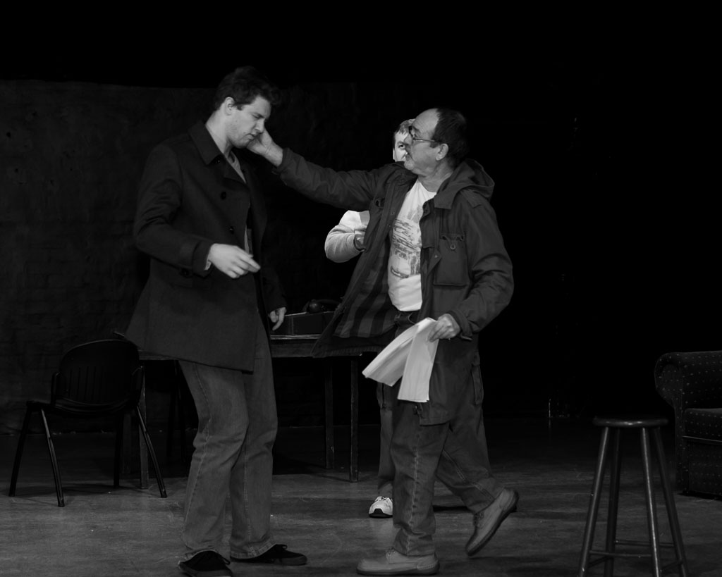 GalleriesArtsTheatre10 Moonlight and MagnoliasRehearsalsStage Drama, Man Touched Face. Stage Drama, Man Touched Face. On stage, a man slaps another's face. A third person watches. Papers are held. Stage Drama, Man Touched Face.