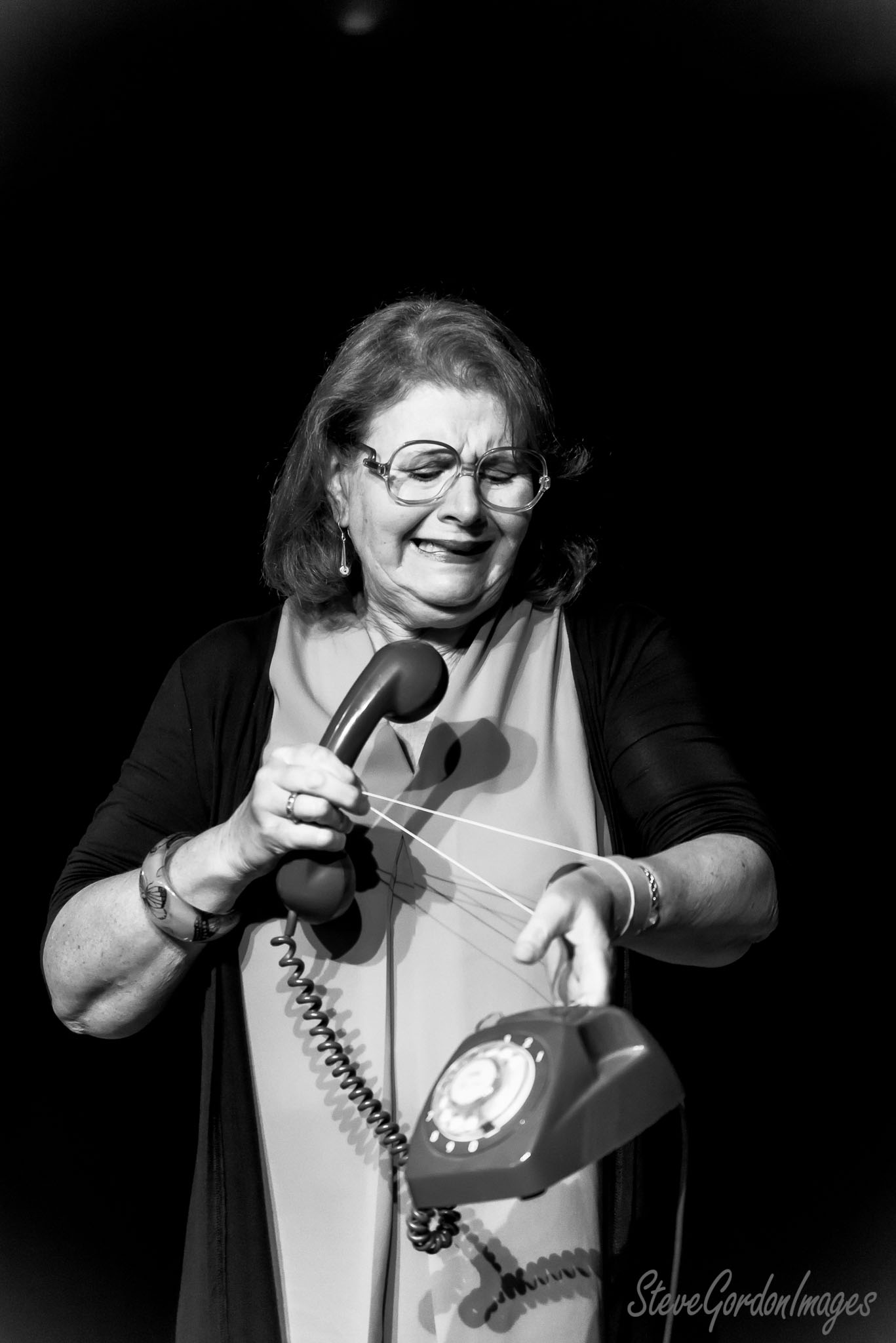 GalleriesArtsTheatre12 Sordid LivesRehearsalsTelephone Drama, Black And White. A woman struggles with a rotary phone, the cord tangled, her expression distressed. The phone rings. Telephone Drama, Black And White.