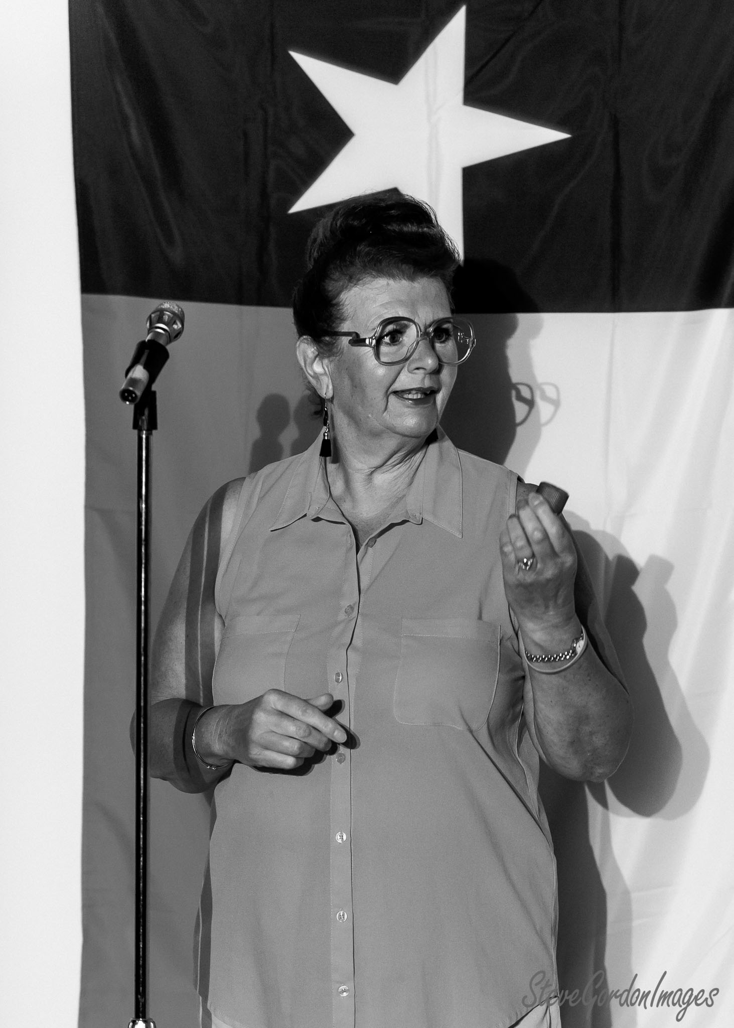 GalleriesArtsTheatre12 Sordid LivesRehearsalsWoman With Microphone, Flag Backdrop. A woman speaks at a podium, holding an object, under a flag with a star. Woman With Microphone, Flag Backdrop.