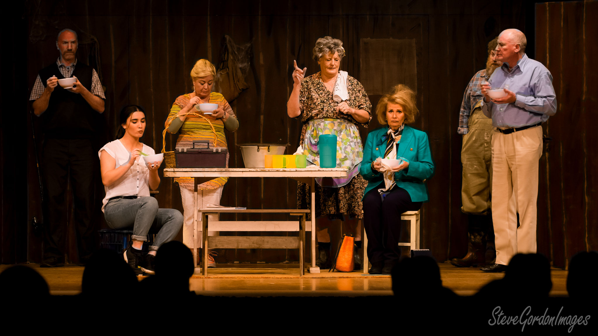 GalleriesArtsTheatre14 Take TwoTake Two PerformancesSoup bowls and stage drama. A play's cast, holding bowls, appear to be eating. The woman in the center gestures, directing. Soup bowls and stage drama.