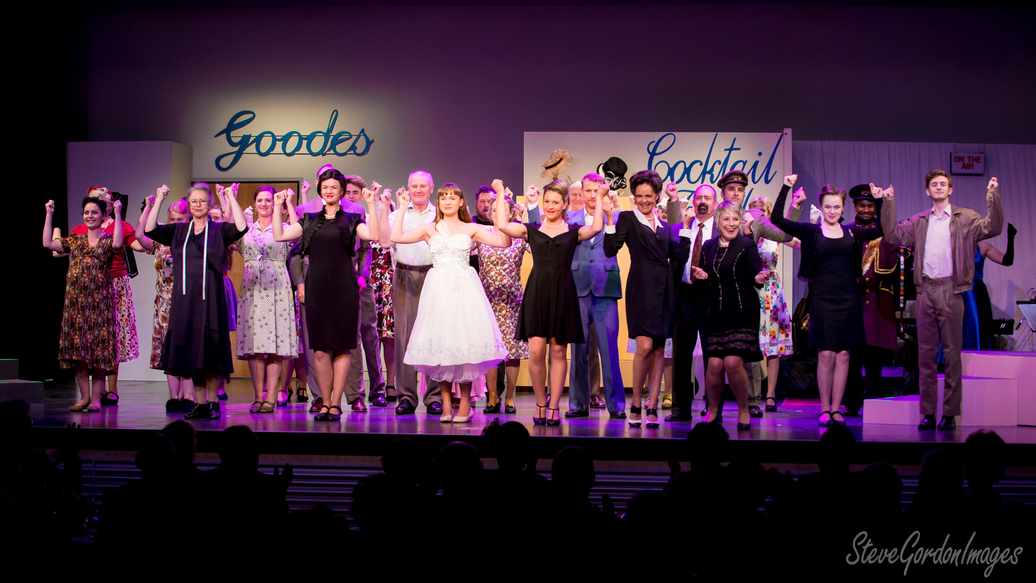 GalleriesArtsTheatre15 Ladies In BlackPerformancesStage Play Cast, Curtain Call. The cast of "Goodes Cocktail" take a bow, arms raised, after a performance. "On the Air" sign visible. Stage Play Cast, Curtain Call.
