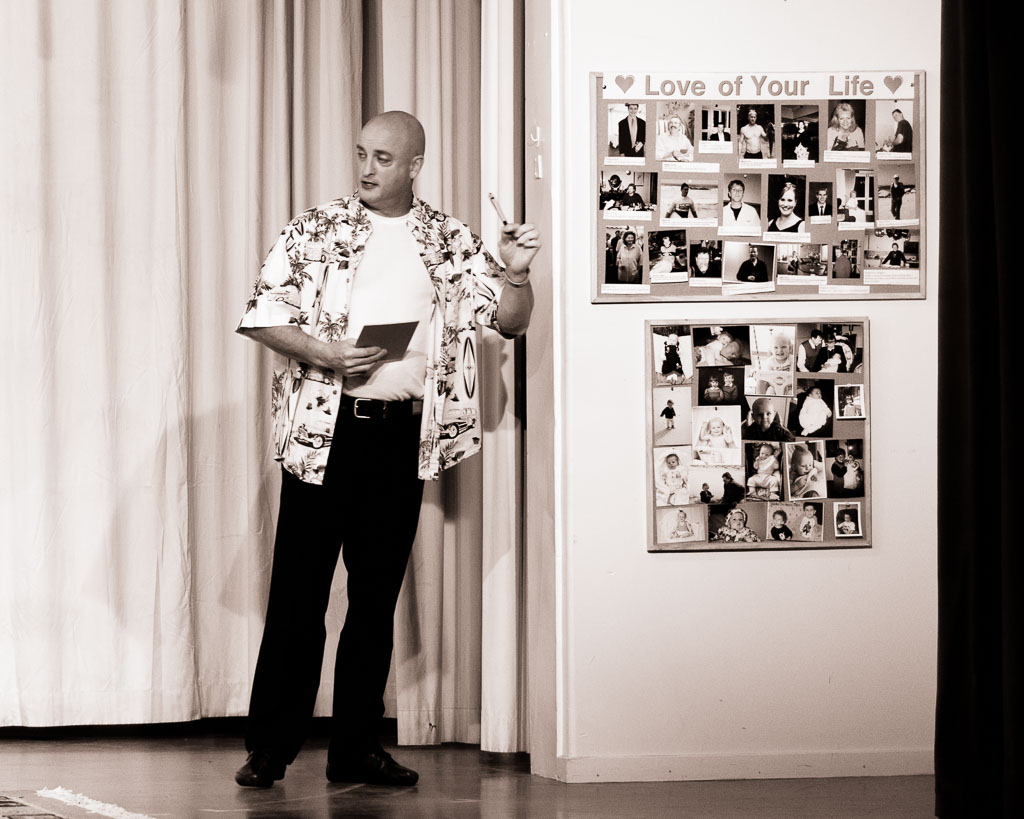 GalleriesArtsTheatre3 4 Lady DirectorsRehearsalsGALLERY-LOVE-OF-LIFE-PHOTOS GALLERY-LOVE-OF-LIFE-PHOTOS Man in Hawaiian shirt speaks, holding notes. Photos of loved ones displayed. A presentation. GALLERY-LOVE-OF-LIFE-PHOTOS