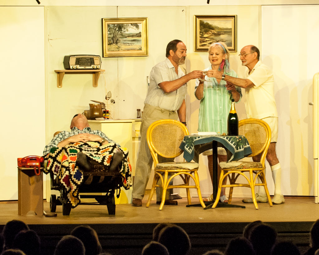 GalleriesArtsTheatre4 Travelling NorthPerformancesSTAGEPLAY, TOASTING, GALLERY, IMAGE, MOMENTS STAGEPLAY, TOASTING, GALLERY, IMAGE, MOMENTS Actors toast, a man sleeps, comedy scene. STAGEPLAY, TOASTING, GALLERY, IMAGE, MOMENTS