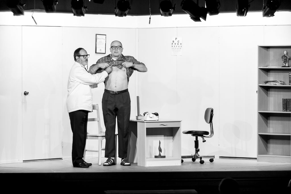 GalleriesArtsTheatre4 Travelling NorthRehearsalsDoctor Examining Patient On Stage Doctor Examining Patient On Stage A doctor examines a patient's chest. An eye chart with letters is visible. The scene is on a stage. Doctor Examining Patient On Stage