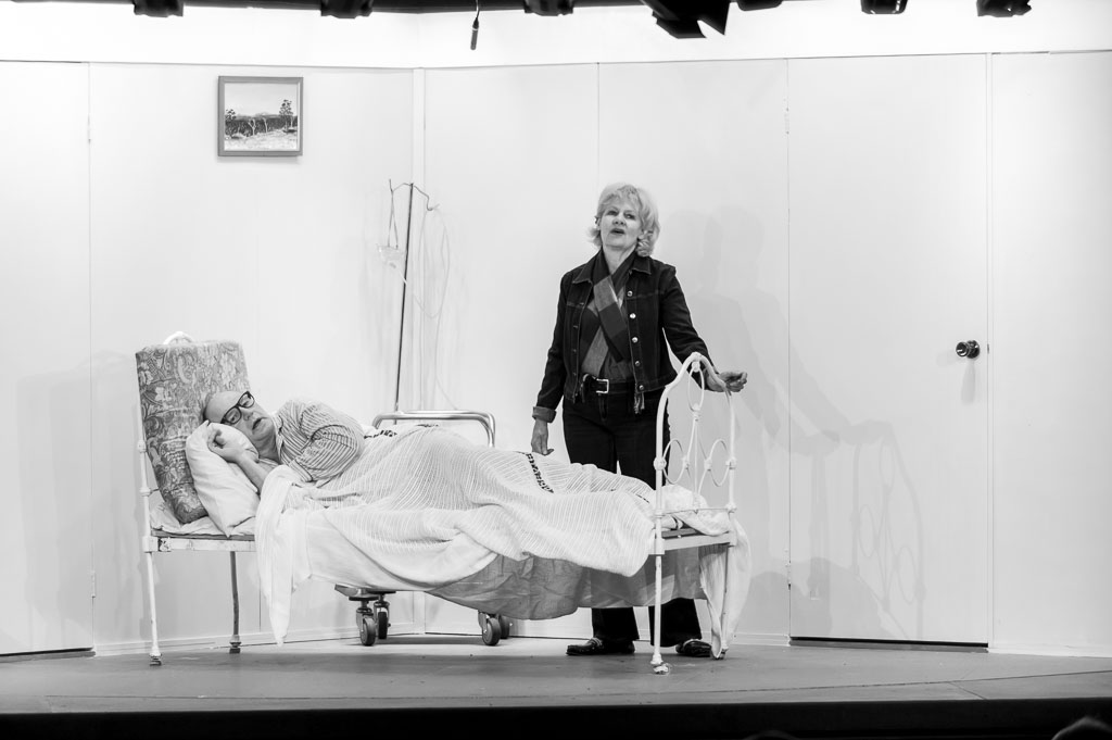 GalleriesArtsTheatre4 Travelling NorthRehearsalsStage Play: The Hospital Visit. Stage Play: The Hospital Visit. A woman stands by a hospital bed where a man rests. A play is in progress. Stage Play: The Hospital Visit.