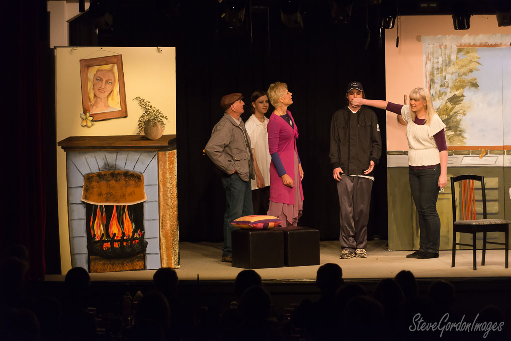 GalleriesArtsTheatre5 Dare DevilsPerformancesStage Play, Hand Covering Mouth. Stage Play, Hand Covering Mouth. On stage, a woman silences a man wearing a "BLACK ICE" hat, as others watch. Stage Play, Hand Covering Mouth.