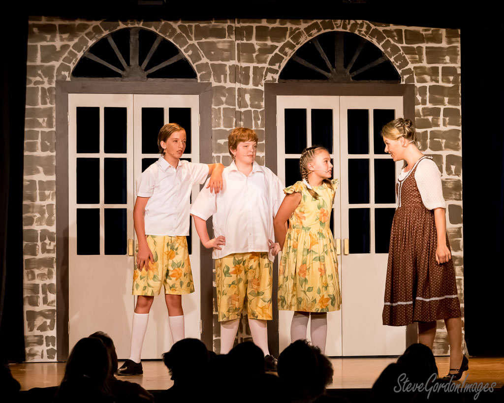 GalleriesArtsTheatre6 Sound of MusicPerformancesStage Play, Costumes, Brick Wall. Stage Play, Costumes, Brick Wall. Four actors perform on stage, dressed in costumes, in front of a brick wall backdrop. They are in a play. Stage Play, Costumes, Brick Wall.