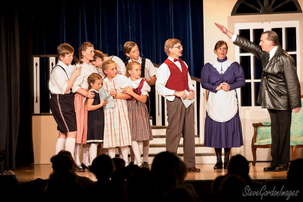 GalleriesArtsTheatre6 Sound of MusicPerformancesStage Play: The Sound Of Music Stage Play: The Sound Of Music A play: The man in leather jacket salutes, the children and adults watch, a stage performance. Stage Play: The Sound Of Music