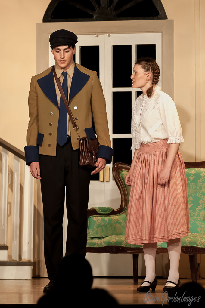 GalleriesArtsTheatre6 Sound of MusicPerformancesStage Play, Man, Woman, Costume. Stage Play, Man, Woman, Costume. On stage, a man in a cap and a woman in a skirt appear to be in a heated discussion. Stage Play, Man, Woman, Costume.