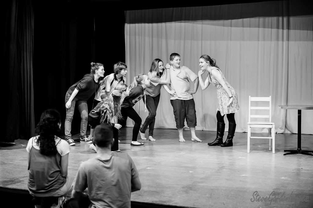 GalleriesArtsTheatre6 Sound of MusicRehearsalsActors Rehearsing On A Stage. Actors Rehearsing On A Stage. A group of young actors perform a play on stage, with a chair and table as props. The audience watches. Actors Rehearsing On A Stage.