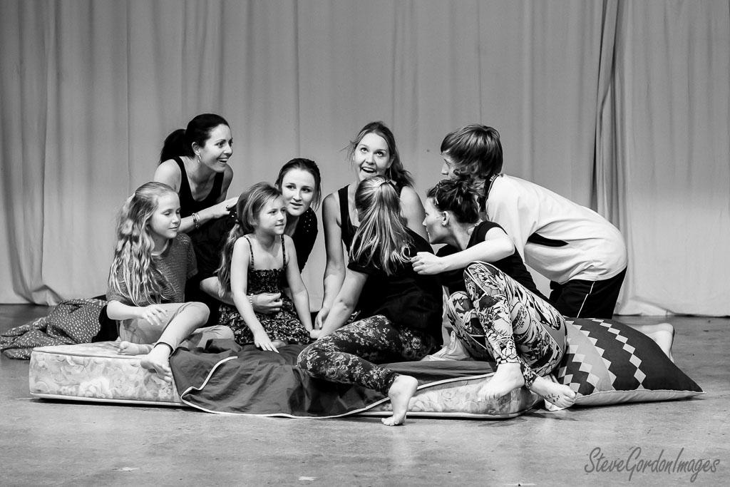 GalleriesArtsTheatre6 Sound of MusicRehearsalsGroup Of People On Mattress. Group Of People On Mattress. A group of people gather on a mattress, laughing. One person wears comic book leggings. They are on a stage. Group Of People On Mattress.