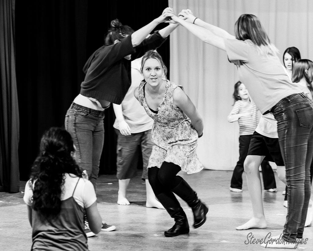 GalleriesArtsTheatre6 Sound of MusicRehearsalsEnthusiastic Dance Class, Black And White. Enthusiastic Dance Class, Black And White. A group of people are dancing. A woman in a floral dress is the focus, with others creating an arch. Enthusiastic Dance Class, Black And White.