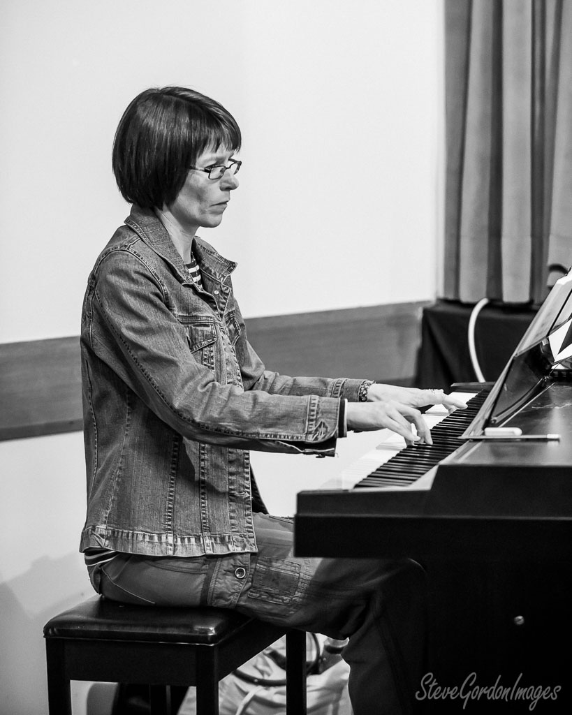 GalleriesArtsTheatre6 Sound of MusicRehearsalsWoman Plays Piano, Black And White. Woman Plays Piano, Black And White. A woman in a denim jacket plays the piano, reading sheet music. She is focused on the keys. Woman Plays Piano, Black And White.