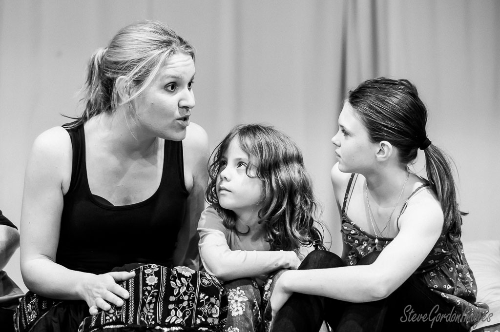 GalleriesArtsTheatre6 Sound of MusicRehearsalsThree Women, Black And White. Three Women, Black And White. A woman speaks to two girls, all seated. The girls listen intently, one with a floral top. Three Women, Black And White.