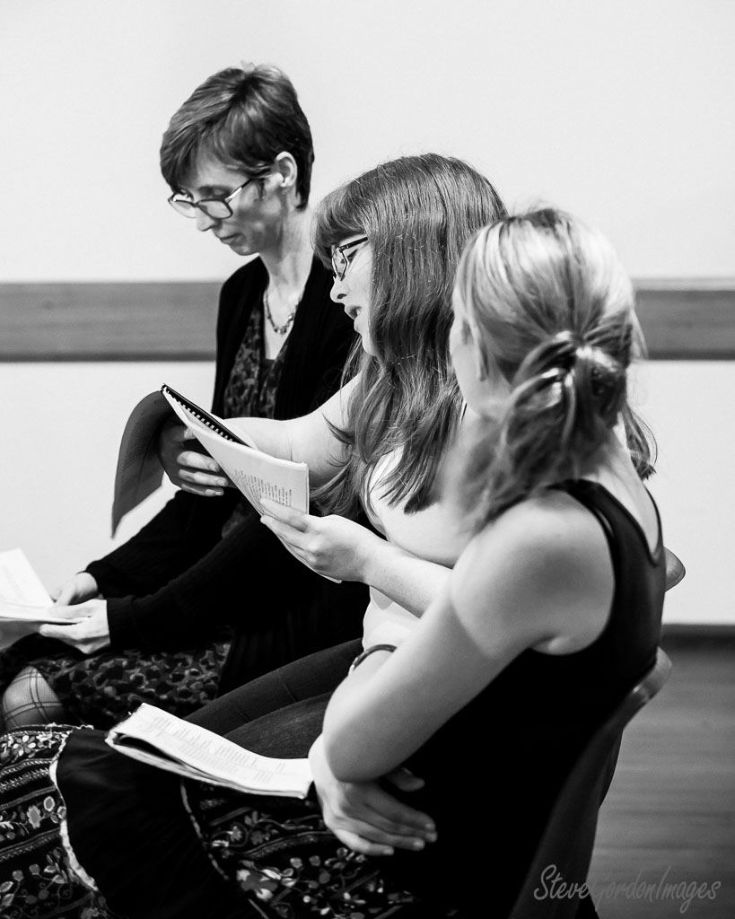 GalleriesArtsTheatre6 Sound of MusicRehearsalsReading Group, Black And White. Reading Group, Black And White. Three women read scripts, rehearsing a play. They wear glasses and hold papers. Reading Group, Black And White.