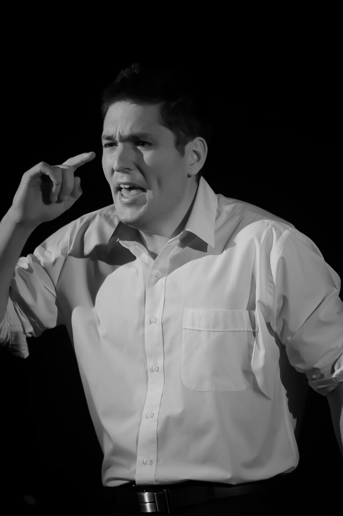 GalleriesArtsTheatre7 Secret Bridesmaids BusinessRehearsalsThoughtful Expression, White Shirt, Black. Thoughtful Expression, White Shirt, Black. A man in a white shirt gestures, pointing at his head, expressing frustration or disagreement. Thoughtful Expression, White Shirt, Black.