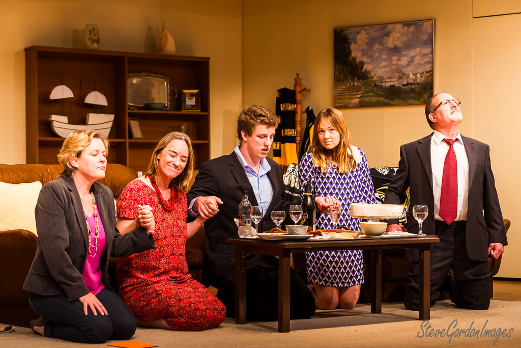 GalleriesArtsTheatre8 Its my partyPerformancesKneeling Actors, Table, Cake, Drama. Kneeling Actors, Table, Cake, Drama. Five people kneel around a table with food and drink. They hold hands, looking up, in prayer. Kneeling Actors, Table, Cake, Drama.