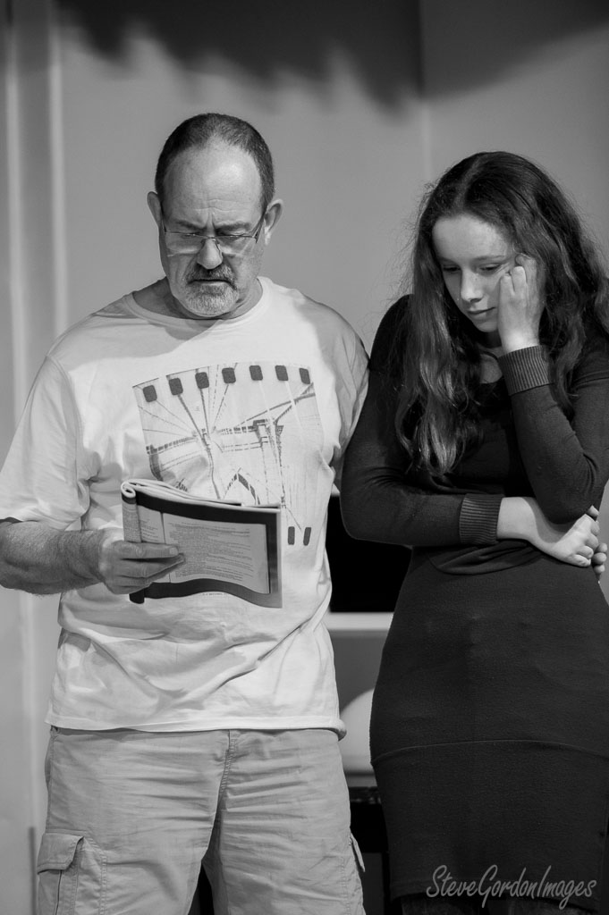 GalleriesArtsTheatre8 Its my partyRehearsalsActors Reading, Contemplating, And Waiting. Actors Reading, Contemplating, And Waiting. A man and woman read a script. The man wears a film reel shirt. The woman looks concerned. Actors Reading, Contemplating, And Waiting.