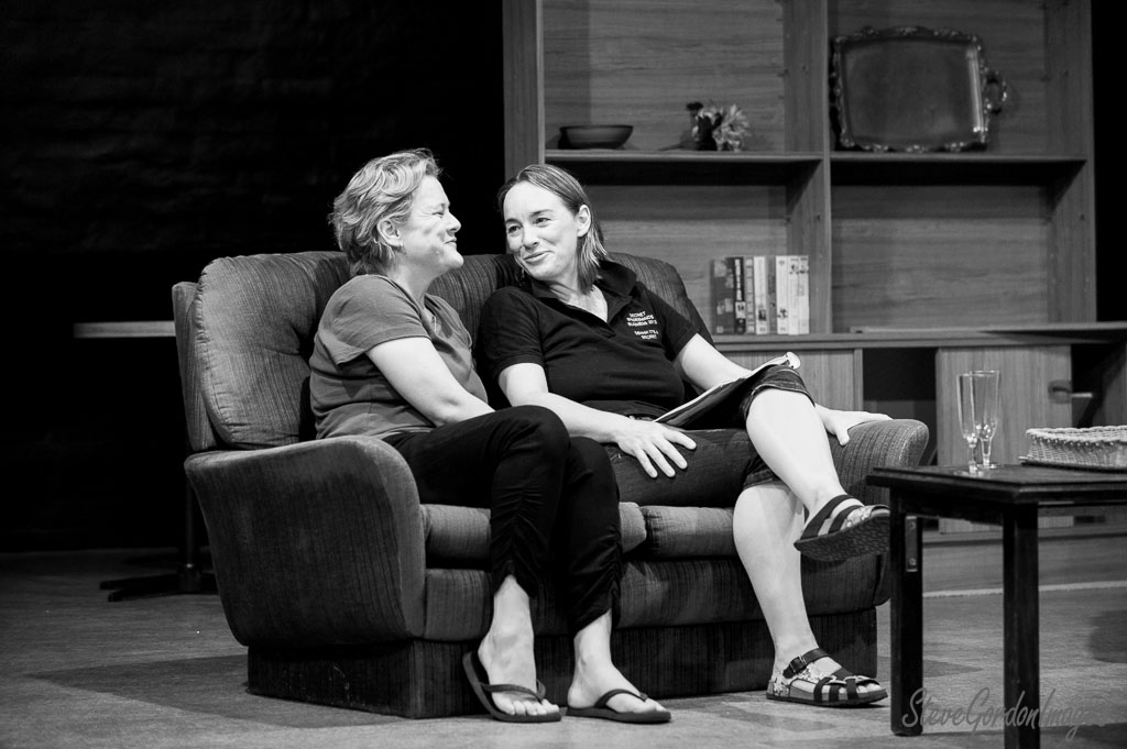 GalleriesArtsTheatre8 Its my partyRehearsalsTwo Women, Couch, Black And White. Two Women, Couch, Black And White. Two women, seated on a couch, converse. One wears a "Secret Shoeshands Business 2013" shirt. They appear relaxed. Two Women, Couch, Black And White.