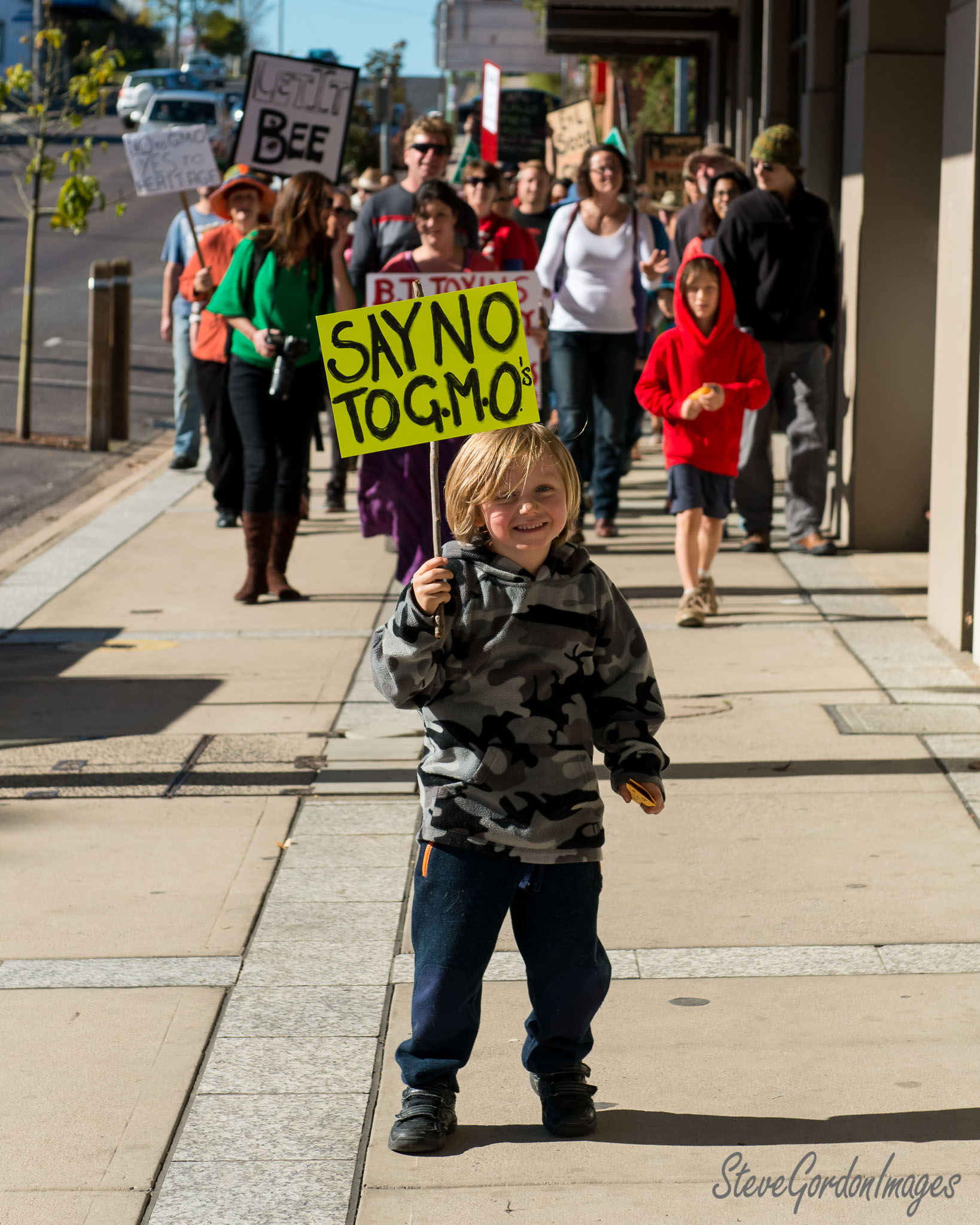 GalleriesHumanitiesProtestsGMOs Little Protestor March GMOs Little Protestor March A child leads a march with a "Say No To GMO's" sign, advocating against genetically modified organisms. GMOs Little Protestor March