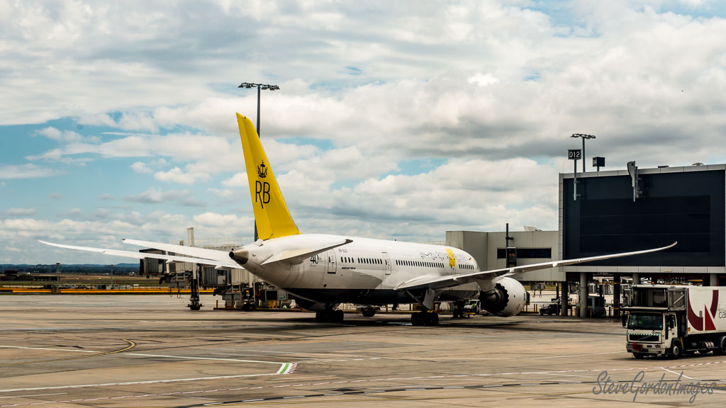 GalleriesTransportationAirBrunei Airplane At Airport, Cloudy. Brunei Airplane At Airport, Cloudy. A Royal Brunei Boeing 787, tail number V8-OLD, sits at gate D12, ready for its next flight. Brunei Airplane At Airport, Cloudy.