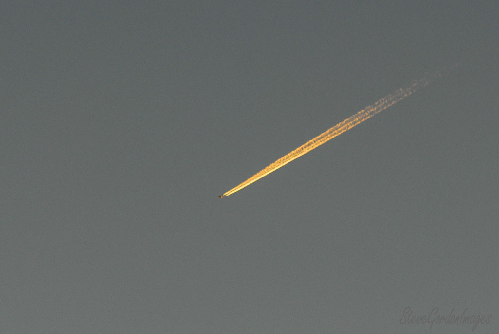 GalleriesTransportationAirGolden Trail Across Grey Sky Golden Trail Across Grey Sky An airplane leaves a contrail in the sky. The plane is traveling, leaving a vapor trail. Golden Trail Across Grey Sky