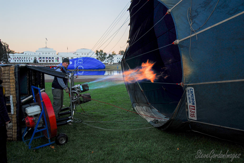 GalleriesTransportationAirBalloon Inflating Over Parliament House. Balloon Inflating Over Parliament House. A man uses a burner to inflate a Cameron A315 hot air balloon near a government building. Balloon Inflating Over Parliament House.