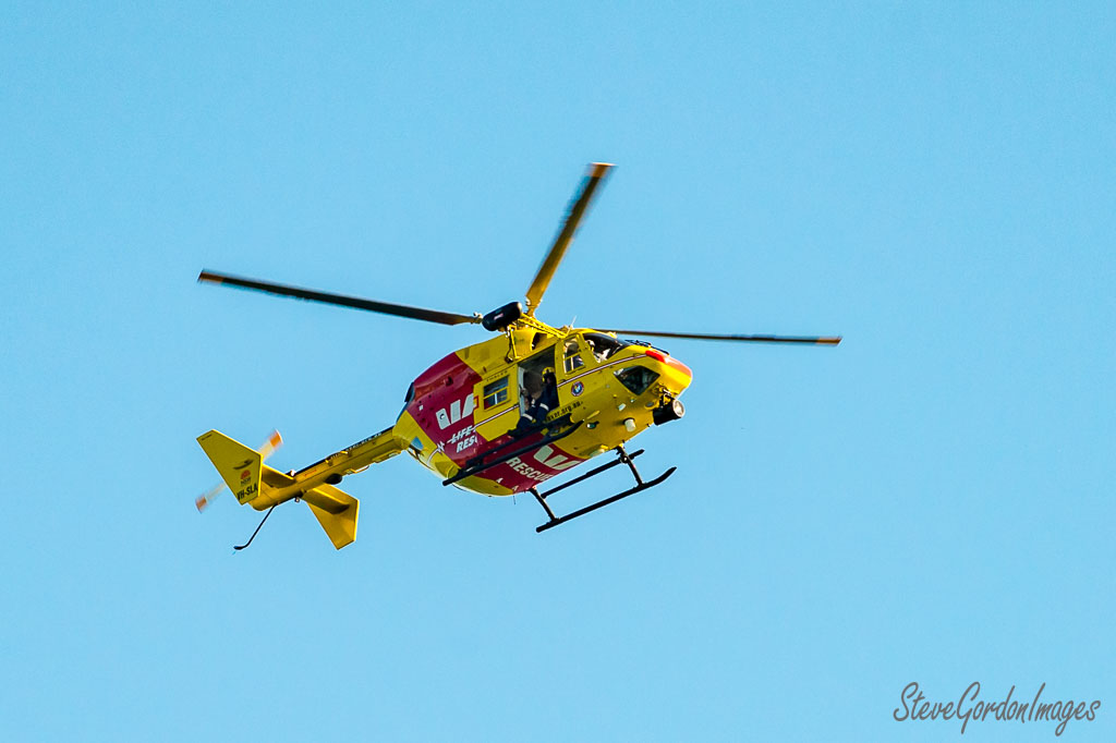 GalleriesTransportationAirYellow Rescue Helicopter In Flight. Yellow Rescue Helicopter In Flight. A yellow and red NSW Ambulance Rescue helicopter, VH-SLA, flies in the sky. It is a rescue mission. Yellow Rescue Helicopter In Flight.