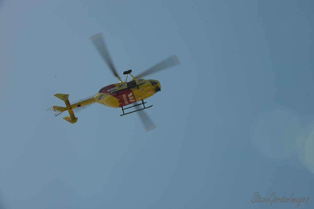 GalleriesTransportationAirYellow Rescue Helicopter In Flight. Yellow Rescue Helicopter In Flight. A yellow and red rescue helicopter flies in the sky. The helicopter has "RESCUE" on it. Yellow Rescue Helicopter In Flight.