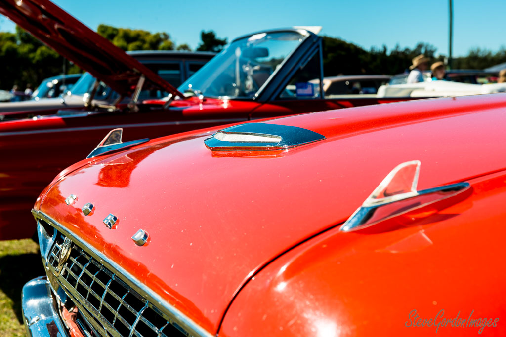 GalleriesTransportationCarsRED Classic Car Hood Detail RED Classic Car Hood Detail Classic red Ford car show, sunny day, vintage vibes. RED Classic Car Hood Detail