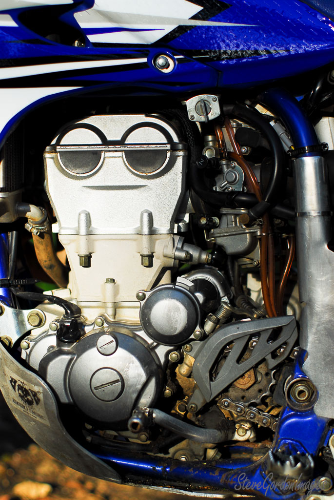 GalleriesTransportationMotorcyclesMotorcycle Engine, Blue And Silver. Motorcycle Engine, Blue And Silver. The engine of a blue and white motorcycle, fuel valve set to "FUEL", ready to run. Motorcycle Engine, Blue And Silver.