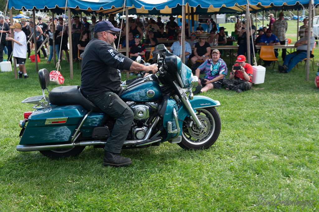 GalleriesTransportationMotorcyclesBiker On Teal Motorcycle, Event. Biker On Teal Motorcycle, Event. A man on a teal Harley-Davidson motorcycle rides through a crowd at an outdoor event. Biker On Teal Motorcycle, Event.