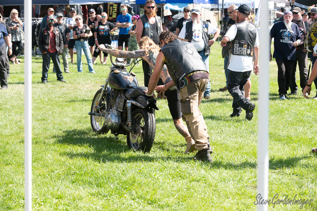 GalleriesTransportationMotorcyclesMotorcycle On Green Grass, Event. Motorcycle On Green Grass, Event. Two men push a motorcycle across a grassy field, likely at a biker event. Motorcycle On Green Grass, Event.
