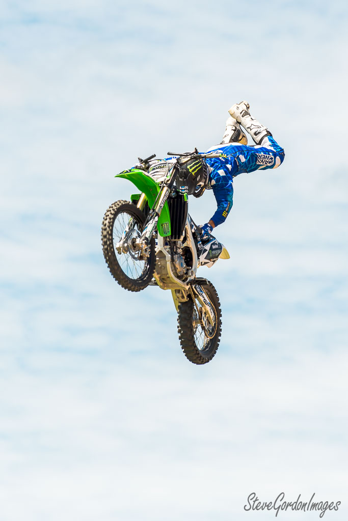 GalleriesTransportationMotorcyclesMotocross Rider In Mid-Air. Motocross Rider In Mid-Air. A motocross rider performs a stunt on a Kawasaki, showing off his skills in mid-air. Motocross Rider In Mid-Air.
