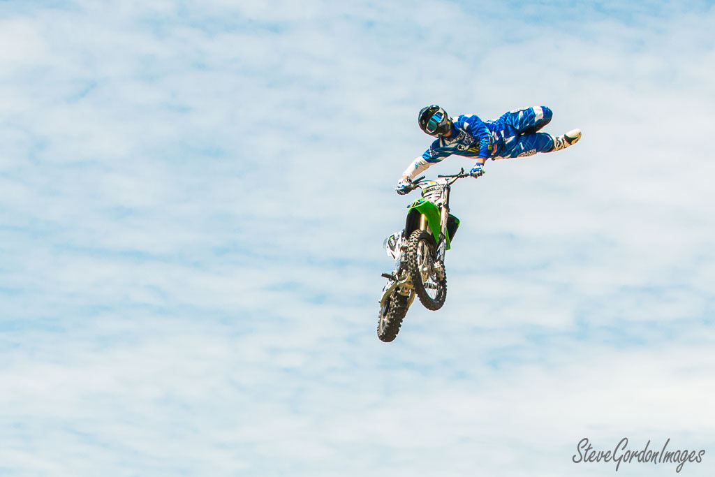 GalleriesTransportationMotorcyclesMotocross Rider Soaring In Sky Motocross Rider Soaring In Sky A motocross rider performs a stunt, flying through the air on a green Kawasaki bike. Motocross Rider Soaring In Sky