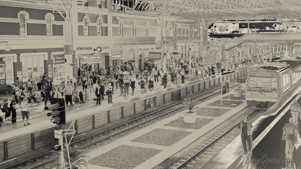 GalleriesTransportationRailPerth Train Station, People Waiting. Perth Train Station, People Waiting. People wait at a Transperth train station. Train 45 arrives. Passengers walk along the platform. Perth Train Station, People Waiting.